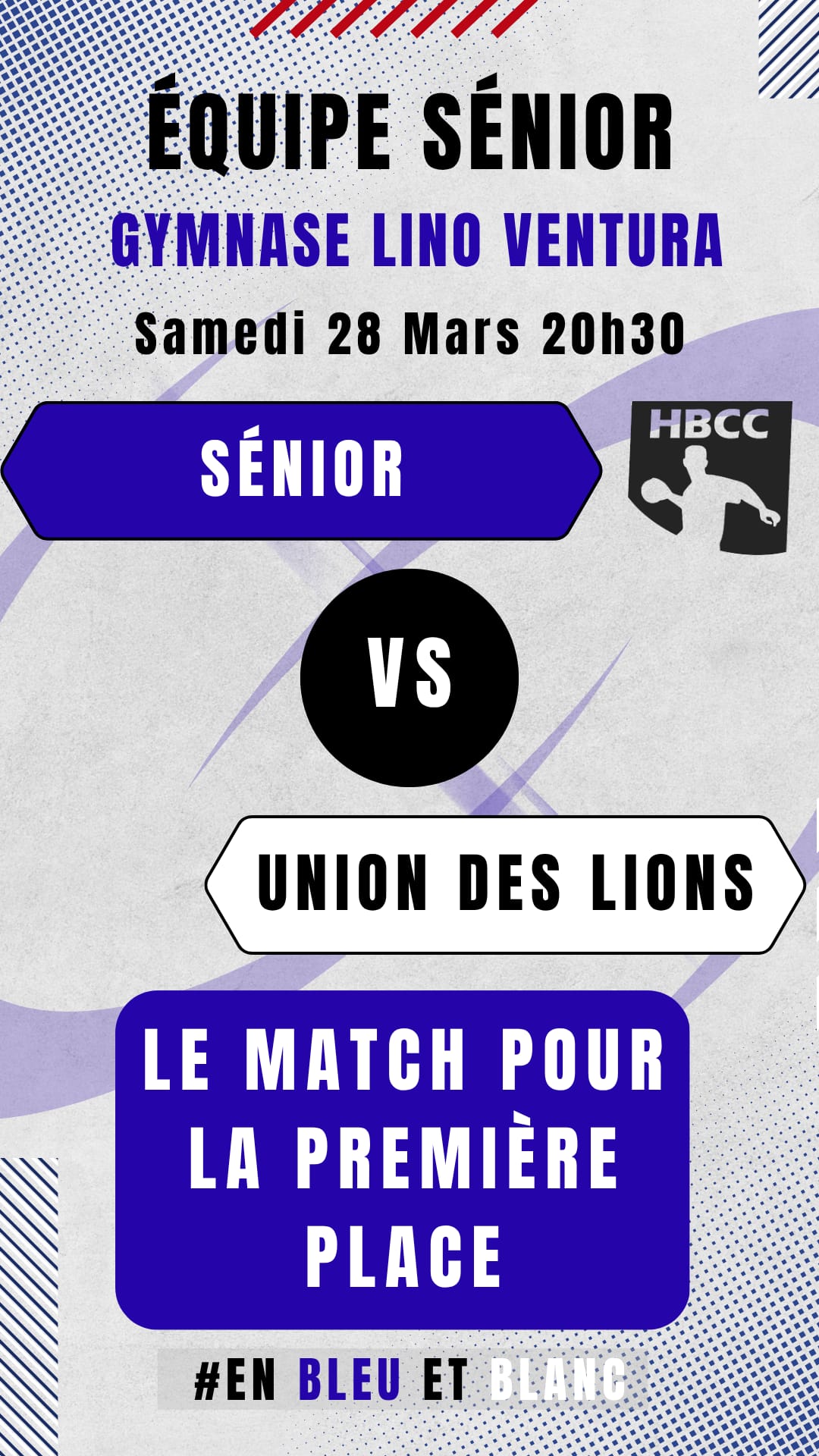 Ce samedi 28 mars, notre équipe Senior dispute un match très important au gymnase Lino Ventura face à Union des Lions.